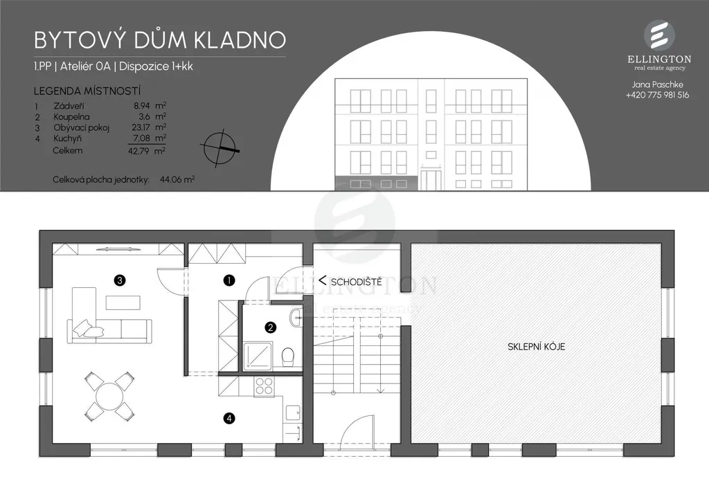 Tímto bychom vám chtěli nabídnout byt 1+kk - ateliér o celkové rozloze 44m2, který je součástí 6-ti bytů v rezidenčním projektu and #34;U zámku and #34; v Zádušní ul. Kladno, který se nachází přímo v centru Kladna, v klidné části mimo hlavní silnici.