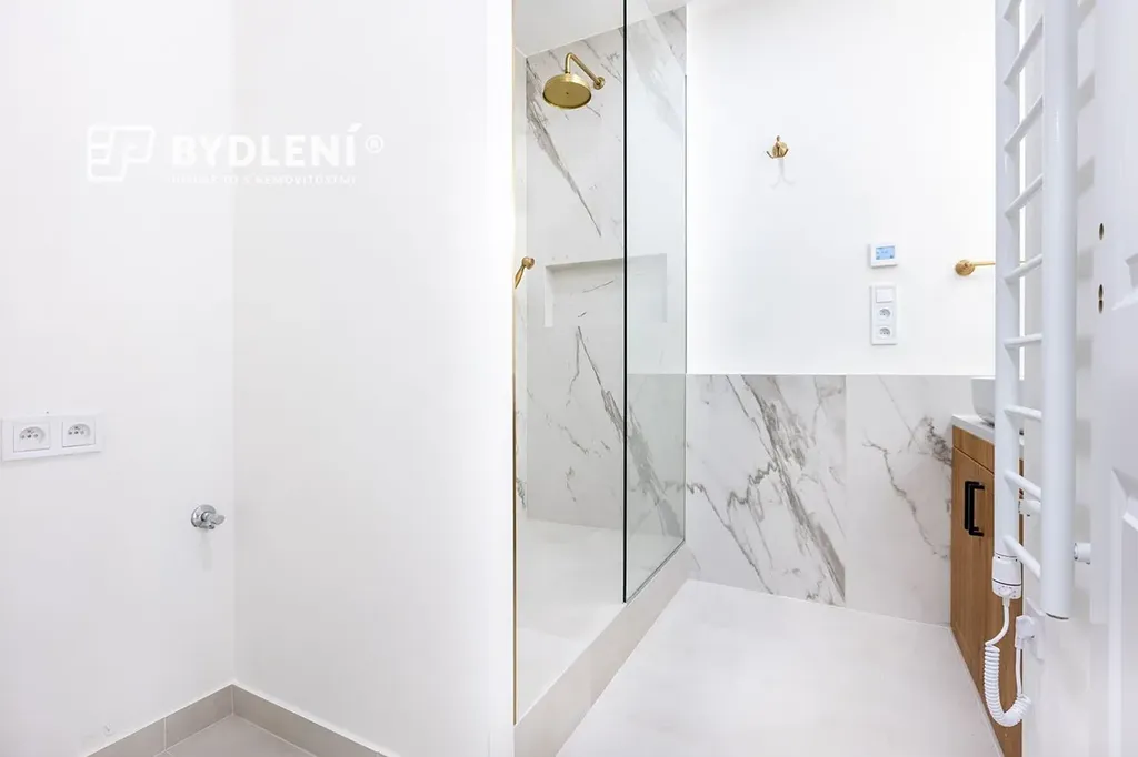V celém bytě je položena prémiová kompozitní vinylová podlaha Quick Step, skládaná do francouzského stromečku. Design i užitné vlastnosti bez kompromisů (voděodolnost, vysoká odolnost proti opotřebení). Veškeré rozvody a radiátory jsou nové. Interiérové dveře jsou od renomované značky Porta, vstupní dveře a zárubeň jsou bezpečnostní. Koupelna zaujme luxusními italskými obklady v dekoru mramoru a kvalitními zařizovacími předměty. Světelná příprava byla dotažena také na lodžii, která nabízí možnost vytvořit si příjemné posezení. K dispozici je i připravená vizualizace.