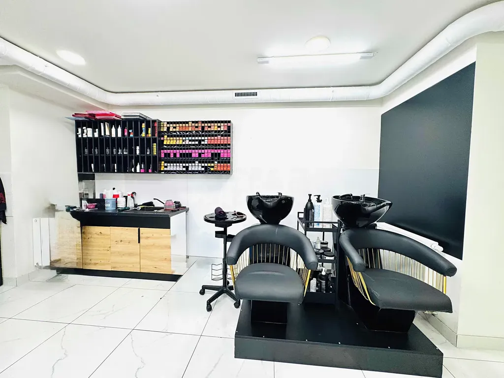 Prostor je rozdělen do dvou podlaží. V přízemí se nachází kompletně vybavený kadeřnický provoz, v prvním patře plně zařízená kosmetická část. Součástí salonu jsou dvě samostatné toalety (pro klienty a personál) a zázemí pro zaměstnance. Prostor splňuje veškeré hygienické a provozní normy pro poskytování kosmetických a kadeřnických služeb.