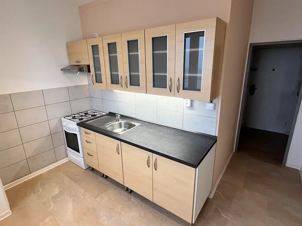 Byt o dispozici 1+1 s lodžií v Prostějově na sídl. Svobody. Nová kuchyně s kombisporákem + špajs, 1 neprůchozí pokoj se vstupem na lodžii s výhledem do okolí, nová koupelna se sprchovým koutem a umyvadlem se skříňkou, samostatné WC, vstupní chodba se šatní skříní. Kompletní osvětlení, nové interiérové dveře, nové podlahy. K bytu náleží sklep.