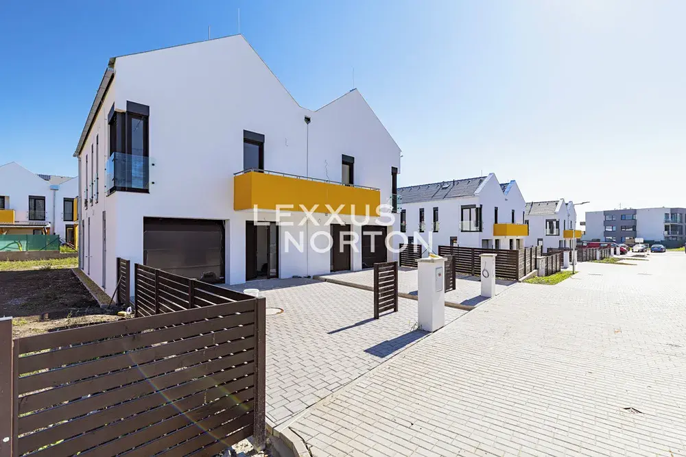 Prostorný pozemek o velikosti 404 m² nabízí místo pro relaxaci a rodinné aktivity. Parkování pro dva vozy je zajištěné venkovním stání a garáží, která navíc poskytuje dodatečný úložný prostor. Projekt je nyní ve fázi hrubé stavby s plánovaným dokončením ve druhém čtvrtletí roku 2026.