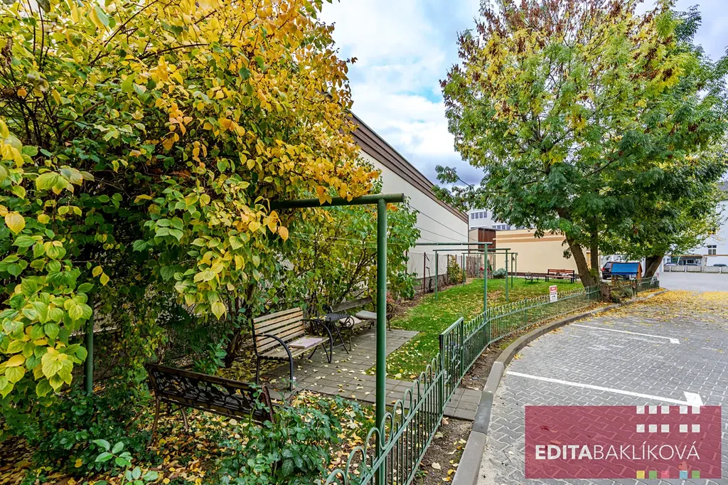 Nájemník má možnost denního parkování ve dvoře domu v čase 7:00–19:00 (noční parkování je určené pouze vlastníkům bytů).