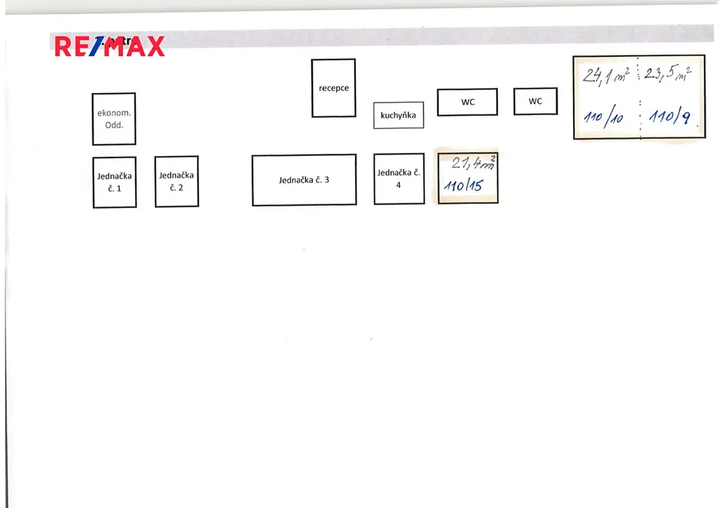 Celková plocha kanceláří je 69m2 (místnost 1: 24,1m2, místnost 2: 23,5m2, místnost 3: 21,4m2). Nachází se v prvním patře cihlového domu s reprezentativními prostory. K dispozici je recepce, kuchyňka, toalety a také pronájem zasedacíh místností (podle počtu jednajících /výběr ze čtyř typů/dle dohody, pronájem je zpoplatněn ceníkem s hodinovou sazbou). Na patře je klidný provoz advokátní kanceláře.