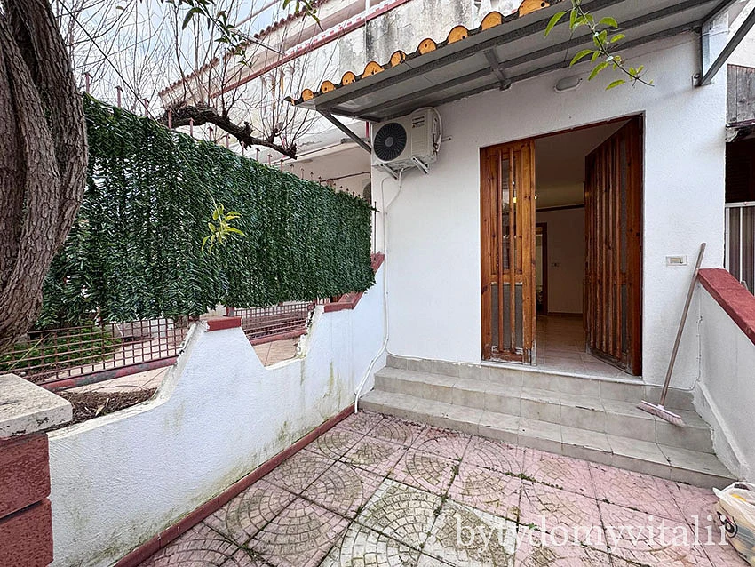 Villetta s terasou a předzahrádkou o velikosti 65 m². Na předzahrádce je krásný, vzrostlý pomerančovník. Villa se nachází v klidné, vilové části Scalea v Via del Mare.