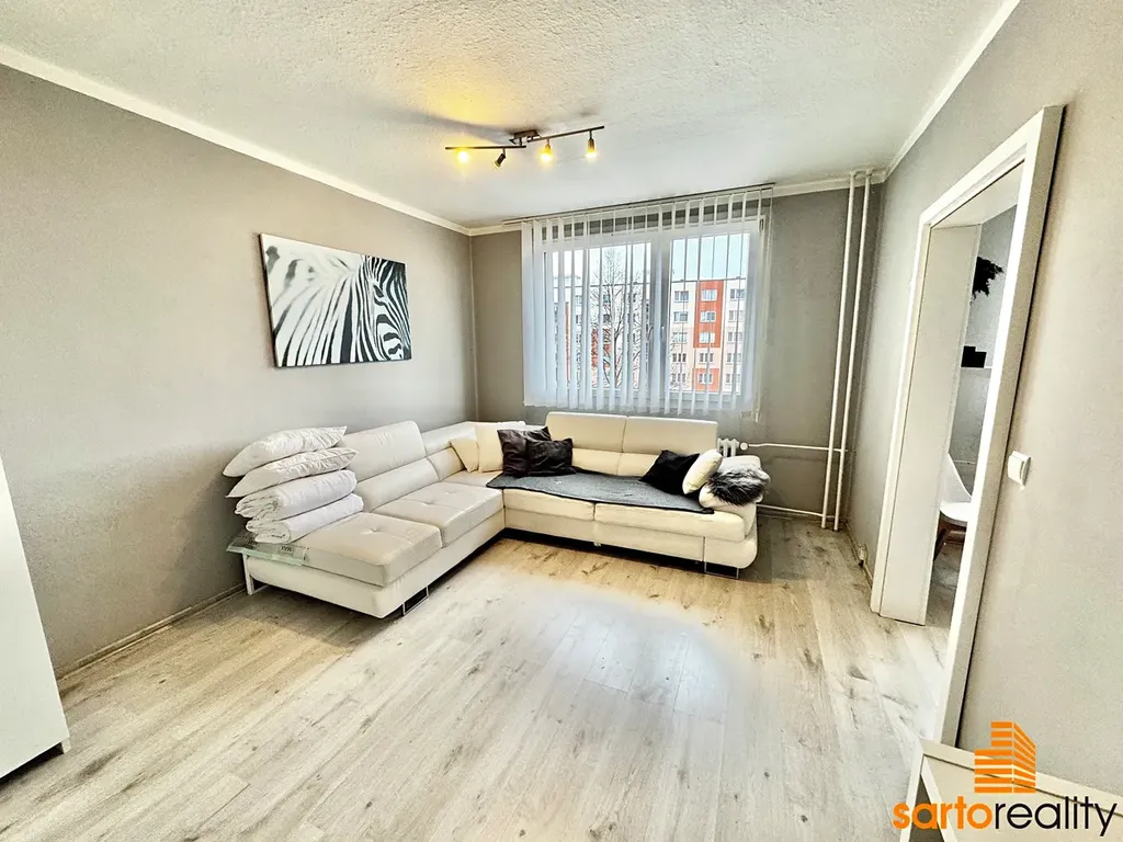 Tento byt, o velikosti 33,5 m2, je situovaný do 5.NP (4.patra) revitalizovaného panelového domu. Skládá se ze vstupní chodby, kuchyně, ložnice, koupelny se sprchovým koutem a WC. V minulosti prošel byt rekonstrukcí - bytové jádro s novou koupelnou, kuchyňská linka, plovoucí laminátové podlahy aj. Byt se nabízí včetně vybavení (pračka, lednice, stůl, židle atd.), ale pokud máte své, není problém pro pronajímatelku byt vyklidit.