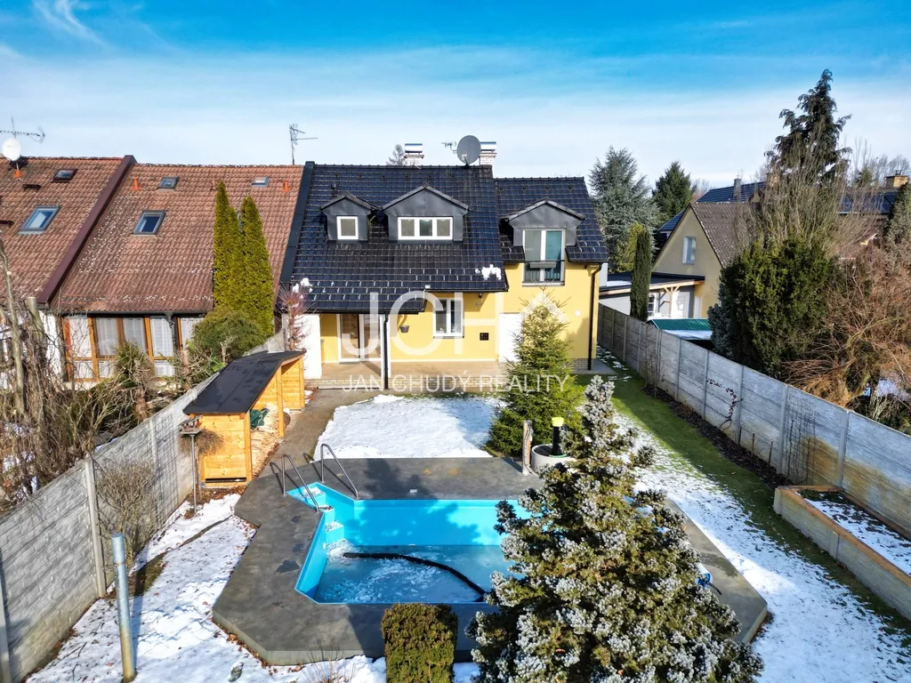 Patrový rodinný dům ve velmi dobrém stavu a vysokém standardu s orientační podlahovou plochou 175m2. Skvělá dispozice domu a vynikající potenciál pro komfortní bydlení i reprezentativní zázemí. Dvě garáže s automatickým pojezdem dveří, vjezdová automatická brána Hormann.