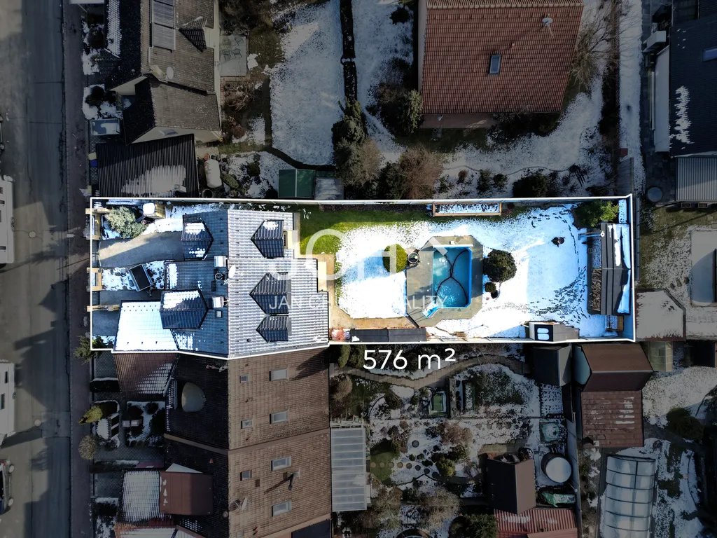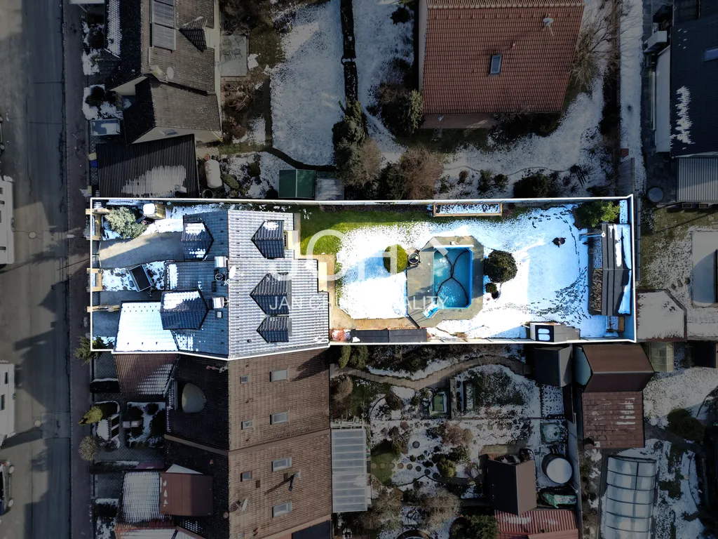 Okna jsou osazena vnitřními termofóliemi se zrcadlovým efektem pro maximální soukromí. Klid na pozemku doplňuje pečlivě upravená zahrada a příjemné terasy v přední části domu (8 m2) i v zadní části domu (20 m2). Pro relaxaci i reprezentativní posezení s hosty ideální řešení. Celá zadní část zahrady je pro větší soukromí obestavěna neprůhledným plotem. Vše je pod kamerovým dohledem a bezpečnostním systémem. Rozměry nemovitosti doložíme při prohlídce kótovaným půdorysem.