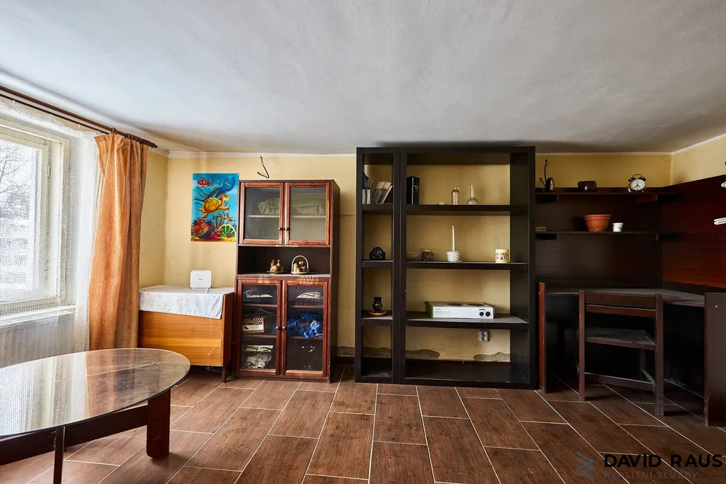 Kuchyně je samostatná a dostatečně velká místnost, kde je prostor nejen pro kuchyňskou linku, ale také pro jídelní stůl i klidový kout pro posezení či odpočinek. Obývací pokoj i kuchyně jsou orientovány do ulice a nabízejí dostatek denního světla.
