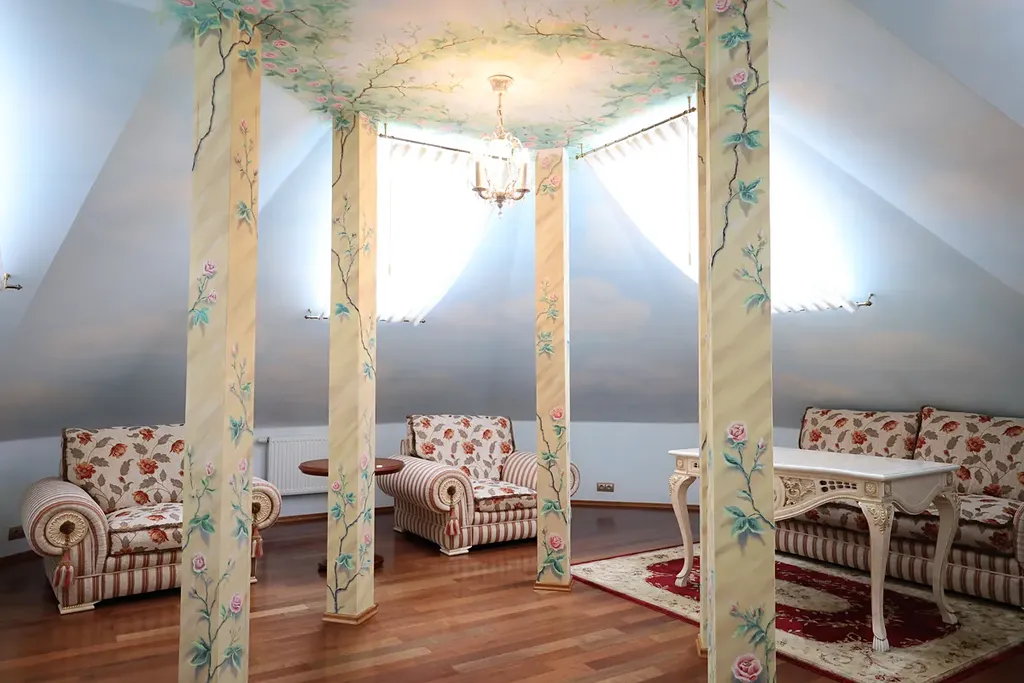 Ve druhém podlaží je ložnice se samostatnou koupelnou vybavenou sprchovým koutem Jacuzzi a toaletou. Ložnice má vlastní balkon s úžasným výhledem. Dále se ve druhém podlaží nachází prostorný pokoj s originálním designem, který lze využít jako pracovna, ložnice, dětský pokoj, pokoj pro hosty apod., s oddělenou prostornou koupelnou vybavenou hydromasážní vanou Jacuzzi a toaletou. Ve druhém podlaží je také technická místnost s vestavěnými skříněmi, pračkou a sušičkou. Byt je kompletně připraven k bydlení, jeho design zahrnuje nejen nábytek, ale i do detailu promyšlené doplňky – záclony, lustry, obrazy a další interiérové detaily. K dispozici je alarm připojený na centrální pult ostrahy.