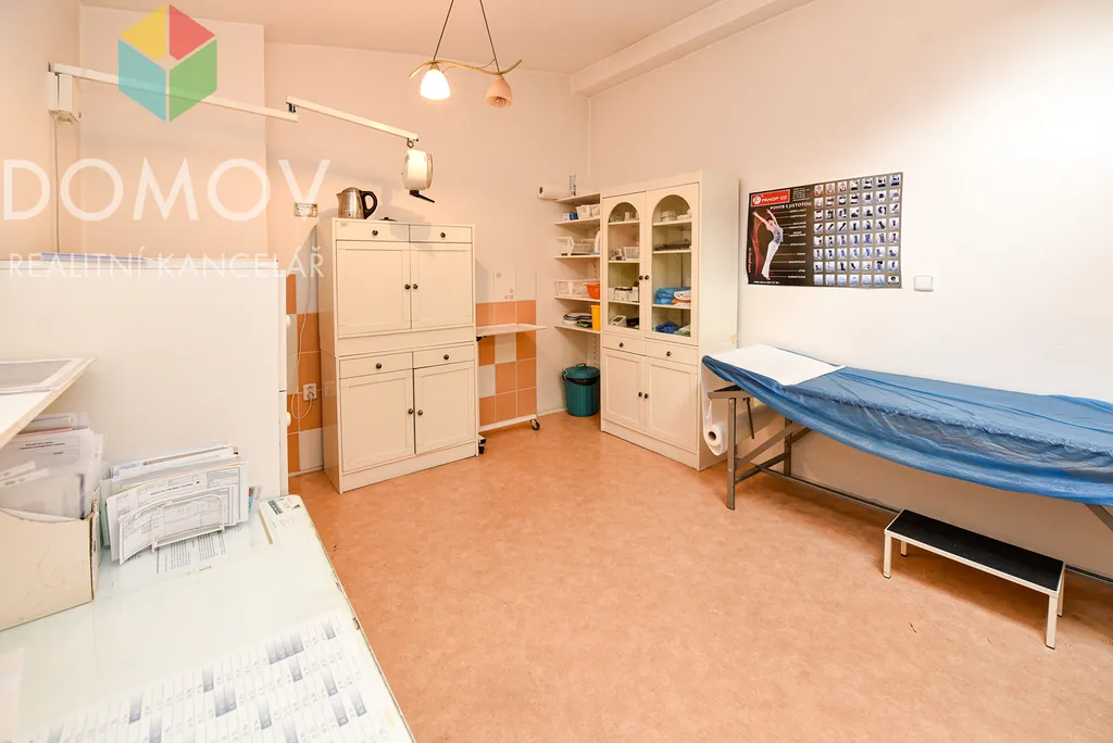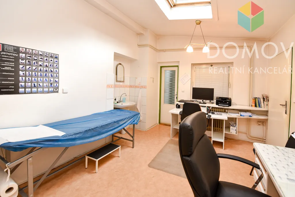 Pronájem komerčního prostoru 21 m² – ideální pro zřízení ordinace, kosmetického, nebo masážního studia, kanceláře či jiného podnikatelského využití. Tento prostor je umístěn v prvním patře Lékařského domu na Plzeňské ulici cca pět minut chůze od Husova náměstí v Berouně. Součástí pronájmu je šatna (7,5 m2), čekárna (8 m2), sociální zařízení.