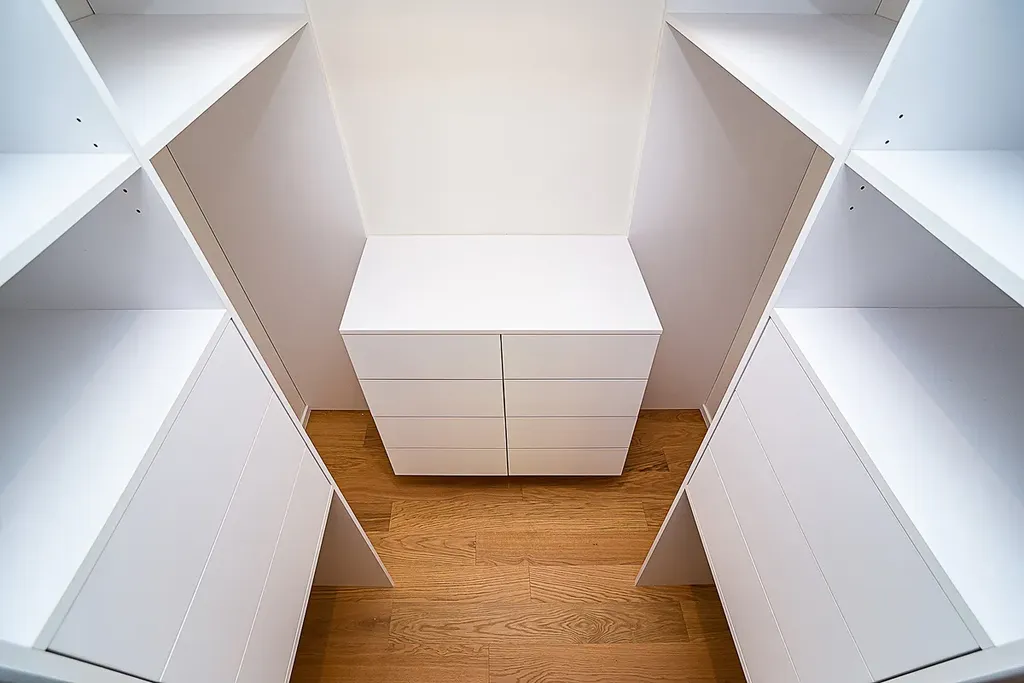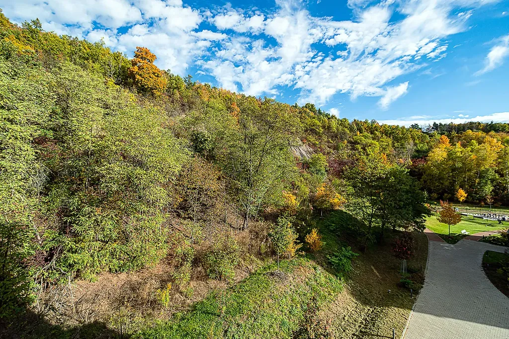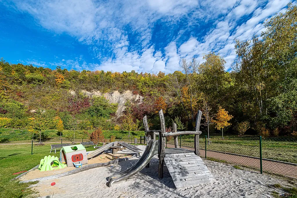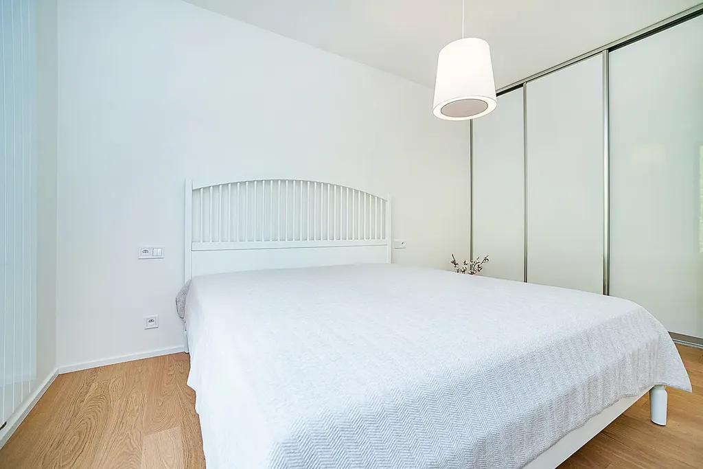 Dispozice bytu nabízí ložnici s manželskou postelí a samostatnou šatnou s vestavěnými skříněmi. Dominantou ložnice je velké francouzské okno s krásným výhledem přímo na skálu. Obývací část je propojena s kvalitně řešeným kuchyňským koutem v lakovaném provedení, s kamennou pracovní i obkladovou deskou Technistone. Kuchyně je plně vybavena vestavěnými spotřebiči – myčkou nádobí, velkou lednicí s mrazákem, indukční varnou deskou, digestoří a nabízí dostatek úložného prostoru.