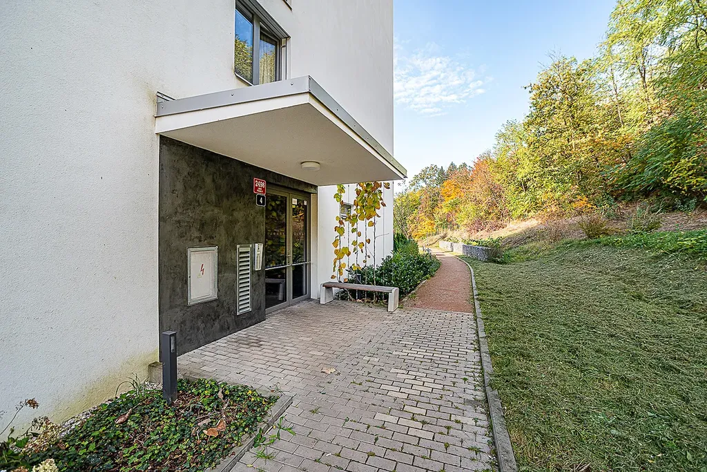 Byt se nachází ve 4. nadzemním podlaží novostavby v ulici Nad Bání, Praha 8 – Libeň, v oceňovaném projektu Rezidence pod Skalou, který získal 2. místo v soutěži Best of Reality 2018. Dům je situován v klidné a velmi příjemné lokalitě na úpatí Proseckých skal, obklopené zelení.