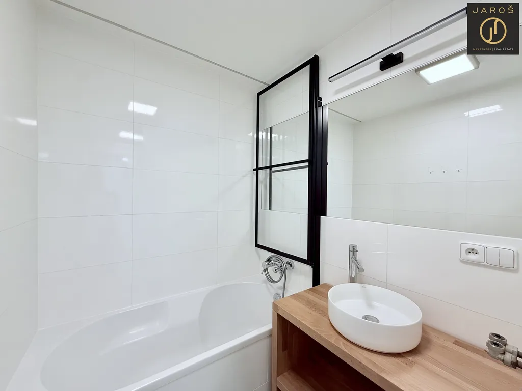 Komfort bydlení zvyšuje elektrické podlahové vytápění v chodbě a koupelně. Ohřev vody zajišťuje vlastní 80l bojler. Dřevěná podlaha je původní, avšak po rekonstrukci a ve velmi dobrém stavu.