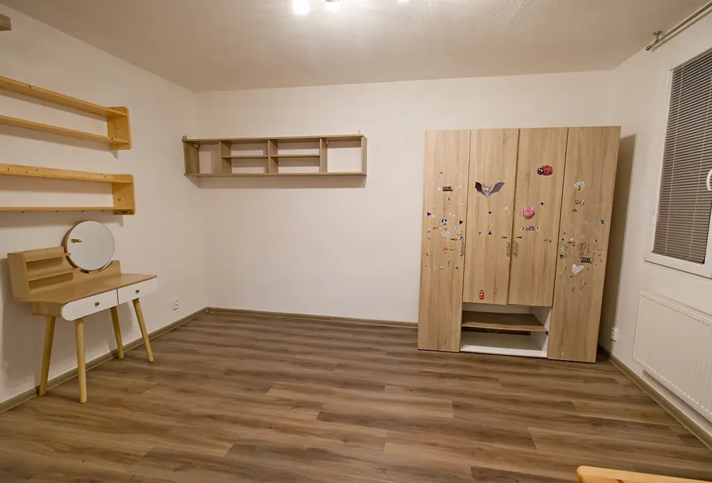 Byt je tvořen třemi neprůchozími pokoji, kdy z obývacího pokoje je vstup na prostornou lodžii. K jednotce náleží sklepní kóje.