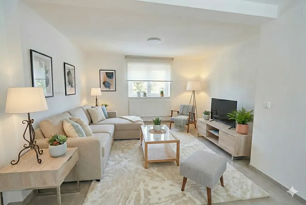 Interiér domu je naskenovaný, využijte virtuální prohlídku umístěnou ve fotogalerii. Fotografie s nábytkem jsou vytvoření pomocí AI a slouží k lepší představě o využití interiéru.