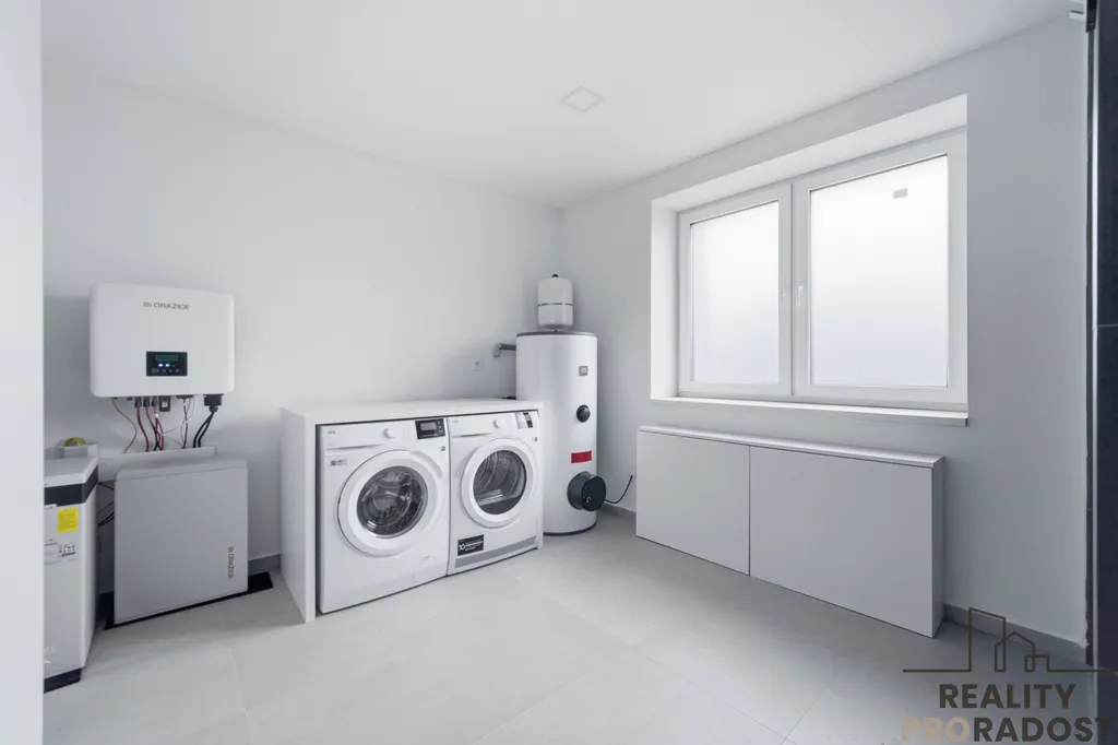 V technické místnosti naleznete pračku, sušičku a bojler na ohřev vody.