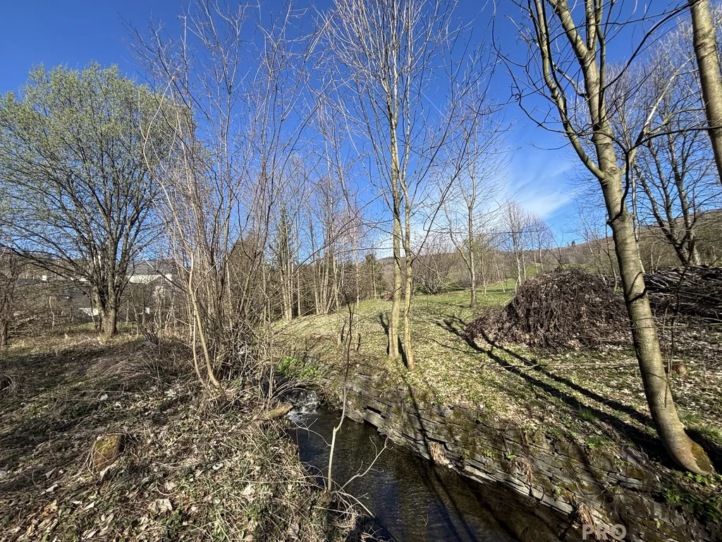Pozemek má výměru 723 m2, je rovinatý, oplocený a jeho součástí je přírodní potok, který protéká přes pozemek a dodává tomuto místu jedinečnou atmosféru.