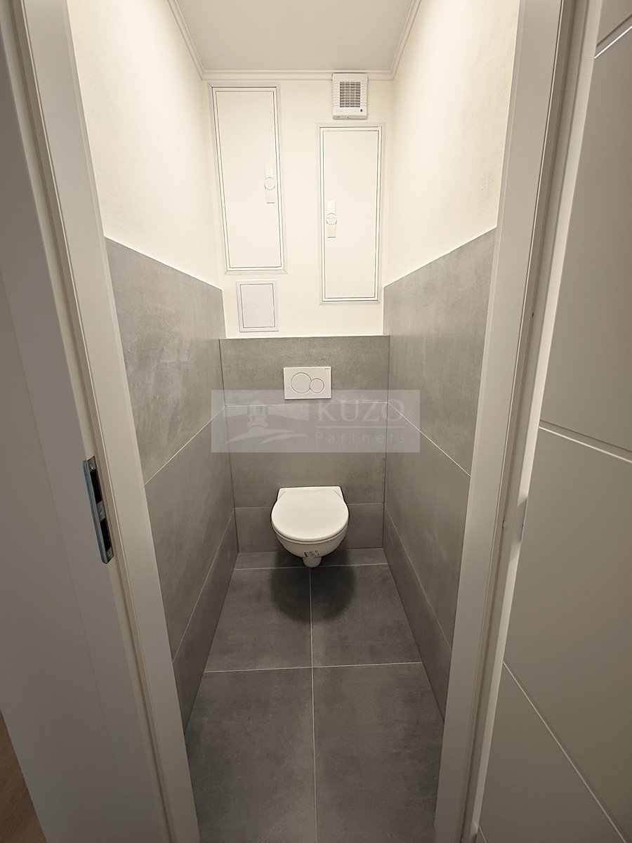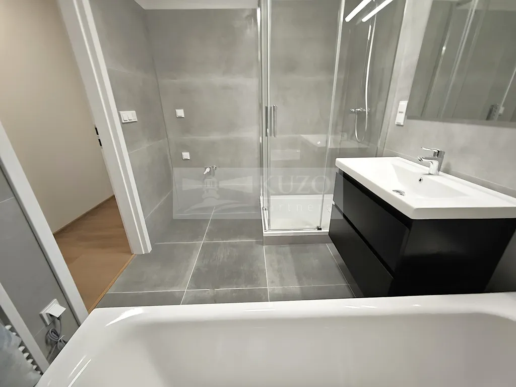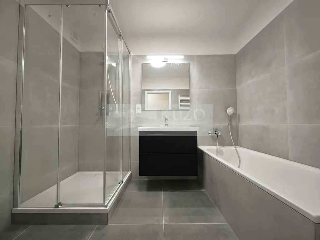 Byt je po kompletní zdařilé rekonstrukci, která zahrnovala: výměnu oken, nyní jsou plastová trojskla. Výměna všech radiátorů včetně schování všech trubek do zdiva. Na podlaze nová stěrka a lepený vinyl vysoké kvality. Nové omítky vč. perlinky. Kompletně nová elektroinstalace, rozvod elektrických i datových zásuvek, nová rozvodná skříň na elektřinu i data. Nová toaleta – Geberit. Nová koupelna s vanou i sprchovým koutem, sanita HANSA, KALDEWEI. Špičková kuchyně dělaná na míru včetně kvalitních spotřebičů (vestavěná lednice s mrazákem, el. trouba, varná deska, myčka digestoř – vše GORENJE. Vše děláno citlivě a kvalitně.