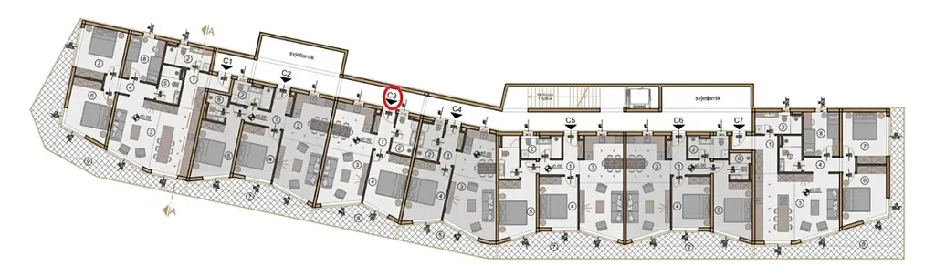 Byt C3 o ploše 51,82 m² se nachází v budově C.