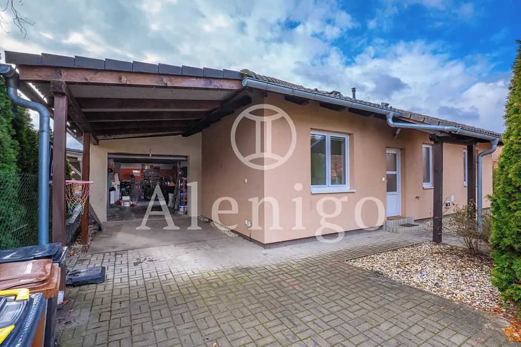K domu přiléhá ještě garáž o rozloze 25 m² a přístřešek pro druhé vozidlo o rozloze taktéž 25 m².