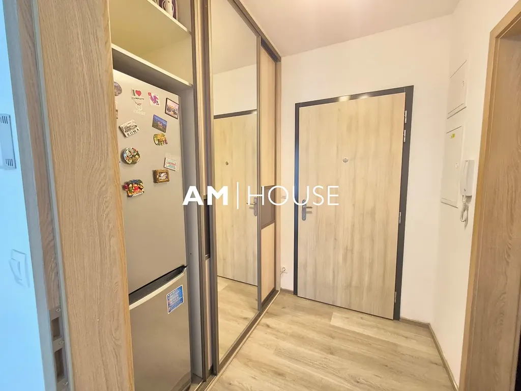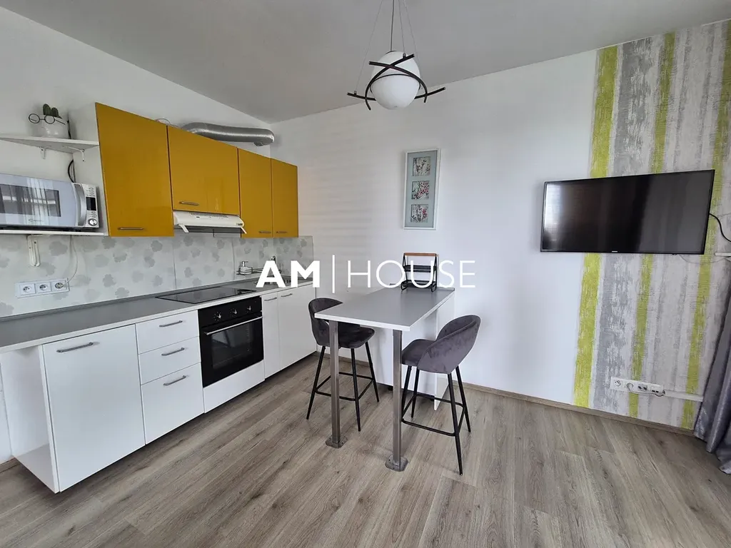 Zařízený byt se nachází v 4. nadzemním podlaží novostavby s výtahem . Obývací část je velký pokoj s kuchyně, která je vybavena potřebnými spotřebiči. Na spání je pohovka. V předsíni je vystavena skříň. Okna mají venkovní rolety.