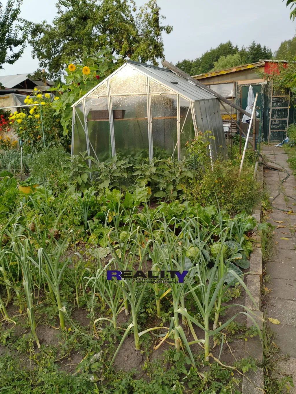 Součástí zahrady je chata o dvou místnostech, skleník, kolna na nářadí, chemické WC a zásobník 1000 l na užitkovou vodu. Záhony jsou čisté, vypleté a upravené, nachází se zde nejkvalitnější a nejúrodnější půda - černozem. Vždy byla výborná a kvalitní sklizeň ovoce ( rybíz, třešeň ) a zeleniny ( obří melouny, lilek, papriky, rajčata, řepa, brambory, atd. ... ). Parcela je výborně dopravně dostupná a autem je možné parkovat přímo u zahrady ( společná široká cesta 3,5 m ), viz poslední foto ).