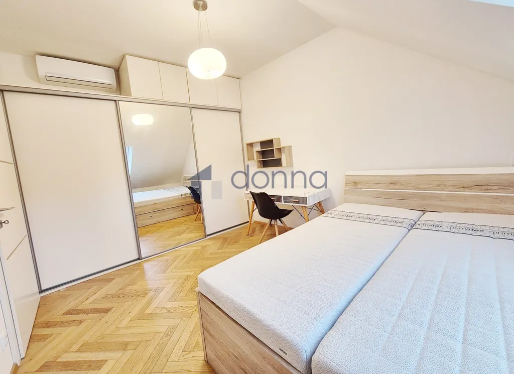 Obývací pokoj s kuchyňským koutem, dvě samostatné ložnice. Klimatizace v každé místnosti, kvalitní dřevěné parkety.