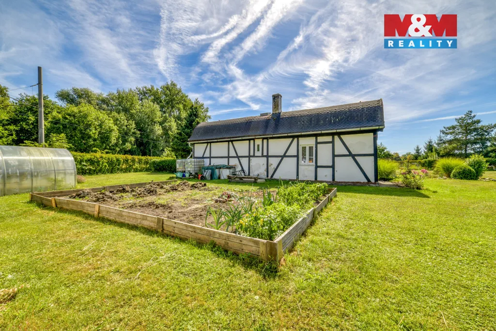 Nabízíme Vám jedinečné místo v lázeňském městě Františkovy Lázně, které se nachází v blízkosti lázeňských parků, ideální pro milovníky klidu a přírody. Na rovinatém pozemku o výměře 4009 m² stojí hrázděný objekt s obloukovou střechou s obytným podkrovím o velikosti 55 m², celková zastavěná plocha a nádvoří je dle KN 369 m². Fasáda je původní, okna jsou plastová, v podkroví jsou nové trámy a izolace. Dům je soběstačný s elektřinou ze solárních panelů + gelových baterií, užitková voda je z vlastní kopané studny. Před domem je zabudovaný bazén a dřevěná pergola pro posezení s rodinou. Aktuálně je využíváno jen k rekreačním účelům, pro celoroční bydlení jsou nutné úpravy. Vytápění zajišťují kamna na tuhá paliva. Velký potenciál nabízí udržovaná zahrada, kde se dále nachází dvě zděné kůlny, pergola pro auta, skleník, záhony, ovocné stromy. Přístup k nemovitosti je zajištěn veřejnou cestou. Pokud Vás tato nabídka zaujala, neváhejte mě kontaktovat pro více informací a sjednání prohlídky.