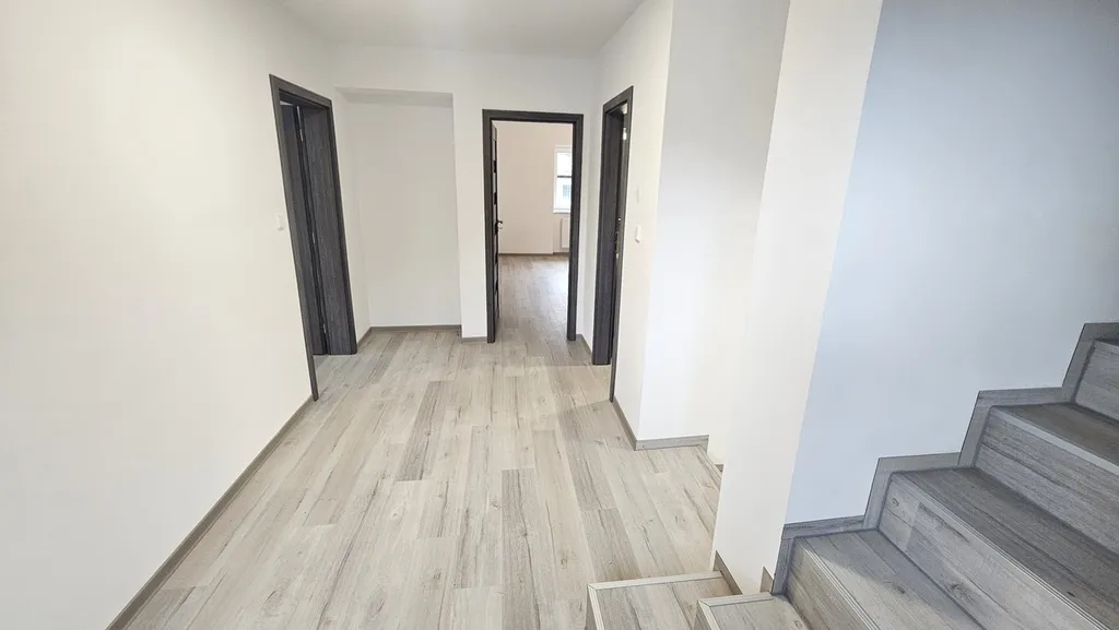 Vstoupit do druhé bytové jednotky můžete společným vchodem nebo použít samostatný vchod přes terasu, čímž se zvýrazňuje nezávislost obou částí domu a zároveň se otevírá potenciál pro dvougenerační bydlení nebo kombinaci vlastního bydlení a pronájmu. Druhou bytovou jednotku můžete použít i jako mezonetové bydlení s dvěma dalšími podkrovními místnostmi s vlastní koupelnou a toaletou, takže vám to nabízí přirozené členění prostoru a pohodlí dalšího soukromého zázemí napříč úrovněmi domu. Ve druhém bytě je chodba, dvě prostorné místnosti (pokoj a obývací místnost), místnost pro kuchyň s komorou (opět možnost dokončení kuchyně dle představ), samostatné WC a koupelna s vanou.