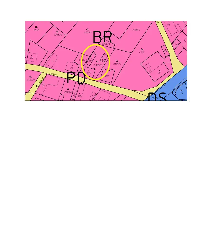 Dům je situován v zóně dle platného územního plánu BR = Bydlení v rodinných domech.