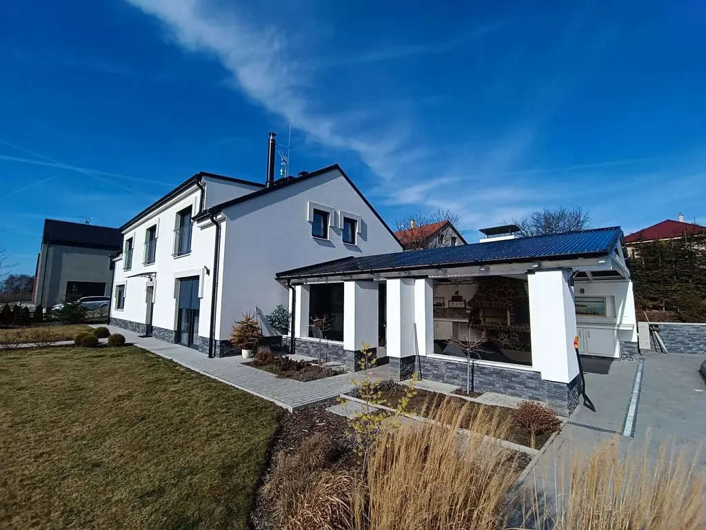 Nabízíme k prodeji novostavbu rodinného domu s venkovním bazénem, krytou pergolou s venkovní kuchyní a kompletně realizovanou zahradou včetně zpevněných ploch, oplocení a parkoviště, ve známé a žádané lokalitě, v nově vzniklé rezidenční části obce Křížkový Újezdec, 10 km od hranice Prahy 4.
