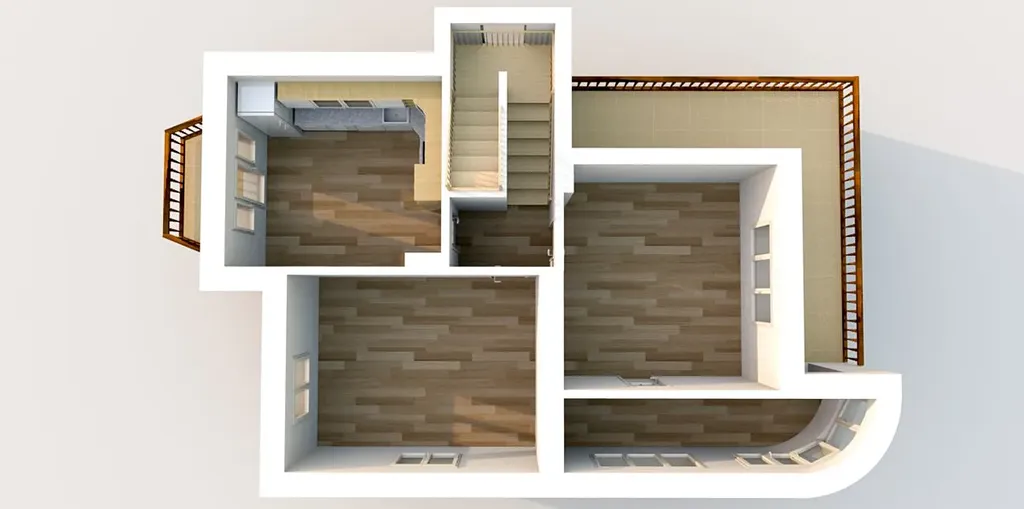 První nadzemní podlaží o podlahové ploše 115 m2, druhé nadzemní podlaží o podlahové ploše 115 m2, terasa 11 m2.