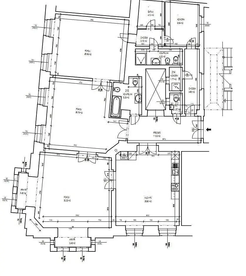 Prostory jsou nezařízené kromě kuchyňské linky. Kuchyň bude ještě dokončena honí skříňky, lednice + ostrůvek. Dispozičně nabízejí 4 místnosti, dále samostatnou prostornou místnost s kuchyňskou linkou, dvě koupelny, šatnu, a samostatnou místnost s pračkou a sušičkou. Prostory jsou vhodné pro tichý chod kanceláře.