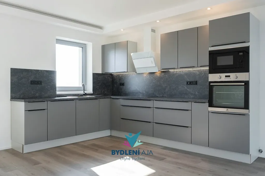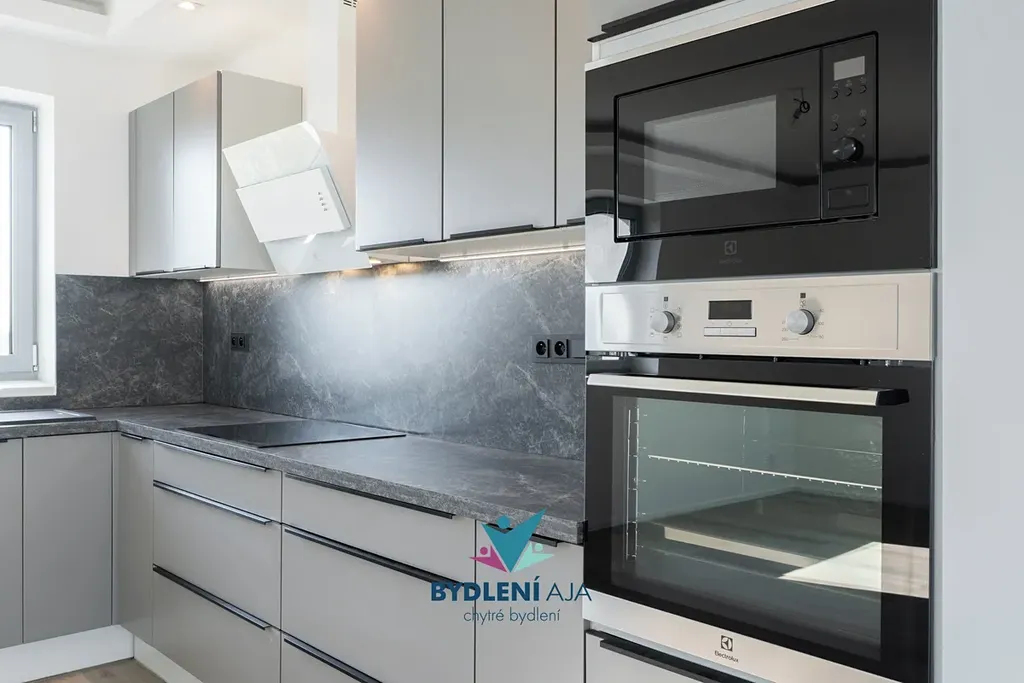 Tepelné čerpadlo, podlahové topení, moderní kuchyňská linka s prémiovými spotřebiči ELEKTROLUX.