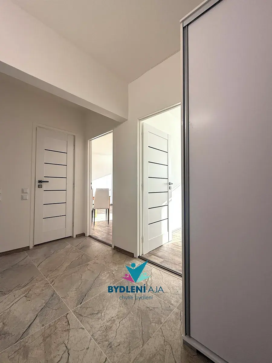 V celém bytě jsou nové plovoucí podlahy, nové dveře, vestavěná skříň a prakticky řešená, plně vybavená předsíň.