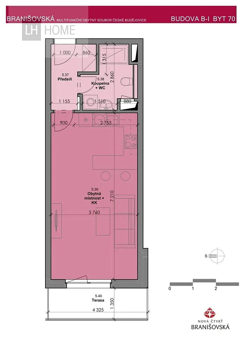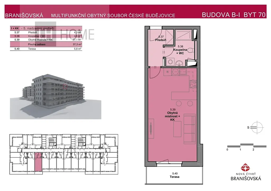 Nabízíme prodej bytu 1+kk o výměře 37,3 m² s balkonem 5,8 m² v moderním rezidenčním projektu Nová čtvrť Branišovská v Českých Budějovicích.