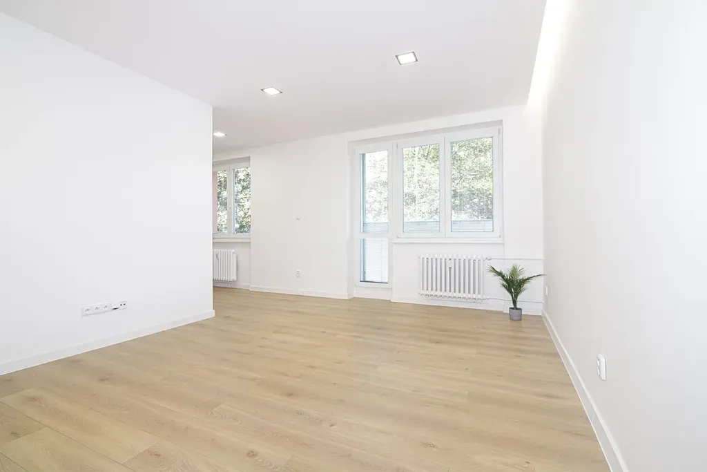 Byt aktuálně prochází kompletní rekonstrukcí, jejíž budoucí standard můžete vidět na fotografiích. V rámci změny dispozice jsme vybudovali navíc praktickou technickou místnost. Byt také disponuje balkonem a sklepní kojí. Navíc se v bytě aktuálně nachází sedačka a postel, takže byt lze začít ihned využívat.