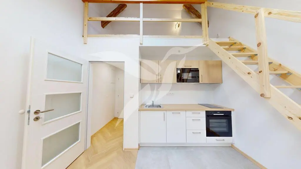 Představujeme podnájem krásného nového bytu o dispozici 1+kk se spacím patrem v centru Plzně, ul. Nerudova.
