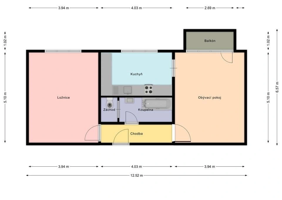 • balkon orientovaný na jih (stejně jako oba pokoje – hodně světla po celý den)