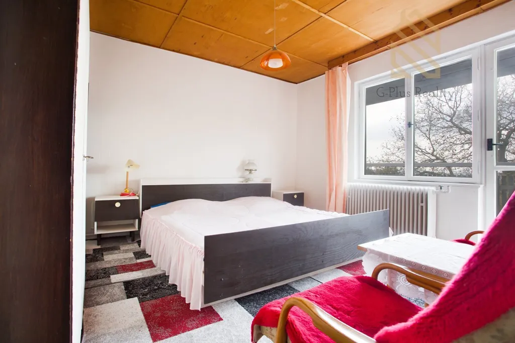 V horním podlaží jsou tři samostatné pokoje. Dva z nich mají vstup na prostorný propojený balkon s výhledem do okolní krajiny, který umocňuje pocit klidu a soukromí. Třetí pokoj disponuje velkým oknem, díky němuž je interiér světlý a velmi útulný, což z něj činí příjemné místo k odpočinku. Na pozemku se rovněž nachází sklep a další technické zázemí potřebné k provozu domu.