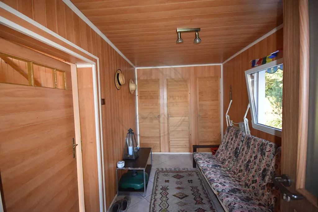 • posezení za domem, zahradní domek