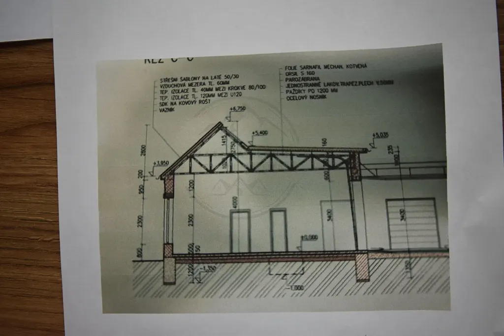 • montážní hala o velikosti 117,45 m², dříve využívaná jako autodílna (zvedák lze odstranit a vznikne tak velký otevřený prostor vhodný i pro prodejnu),