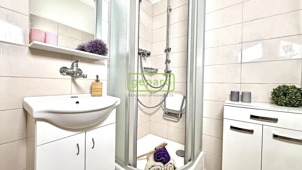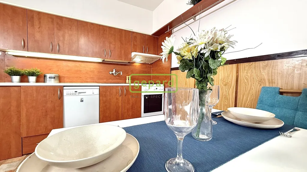 Dispozice 2+1 poskytuje praktické a funkční uspořádání místností a je navíc doplněna o velkou šatnu, která výrazně zvyšuje komfort bydlení a elegantně řeší dostatek úložného prostoru. Byt má zděné jádro. V koupelně se nachází zrekonstruovaný sprchový kout. Kuchyňská linka je vybavena myčkou, plynovým sporákem a el. troubou.