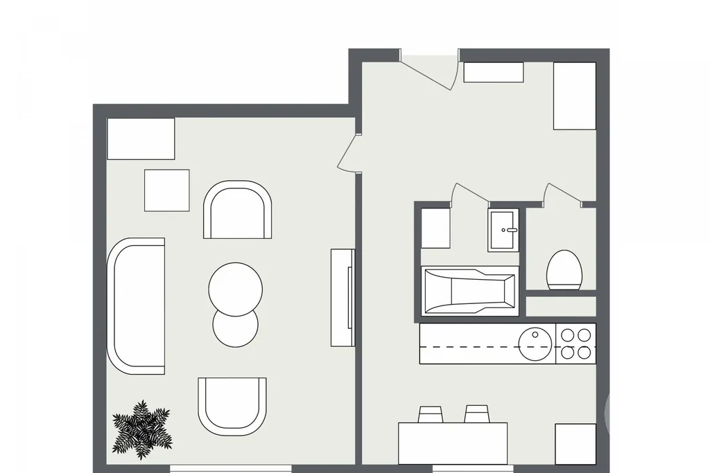 Jednou větou: fajn byt 1+1 za slušnej peníz, kde se můžeš hned nastěhovat.