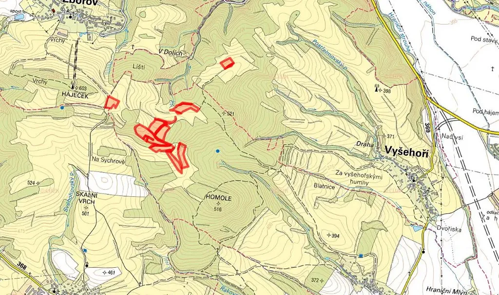 Pozemky v k. ú. Vyšehoří jsou zapsány na listu vlastnictví č. 84 a jedná se o parcely: