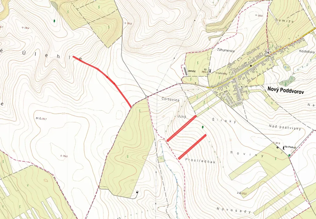 -> pozemky v rovině, efektivní hospodaření bez terénních omezení