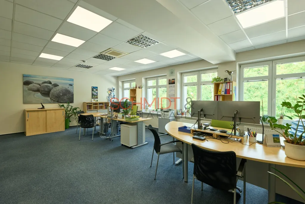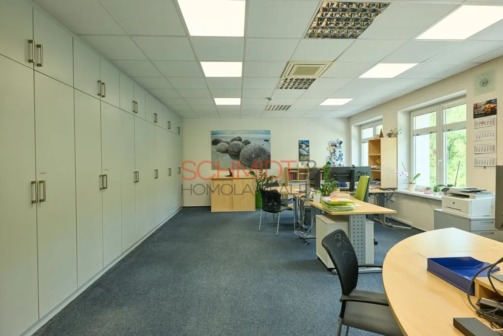 Nabízíme k pronájmu moderní a plně vybavený kancelářský prostor o rozměrech 38,8 m² situovaný ve druhém nadzemním podlaží administrativní budovy na adrese Herbenova 869/42 Hustopeče. Ke kanceláři lze využívat společný prostor vybavený barem, zasedací místností, archívem, šatnou, serverovnu a toaletami. Součástí pronájmu je vybavení viditelné na fotografiích, dále jedno parkovací místo. Prostory jsou přístupné z centrálního schodiště či z výtahu. Budova i vybavení - vše je v pečlivě udržovaném stavu, a je součástí uzavřeného areálu. Prostory jsou chráněny zabezpečovacím systémem a systémem požární signalizace. O venkovní prostory se stará bezpečnostní agentura. V patře se nachází vícero samostatných kanceláří, energie se budou rozpočítávat podle m². Vodné a stočné je zahrnuto v nájmu.