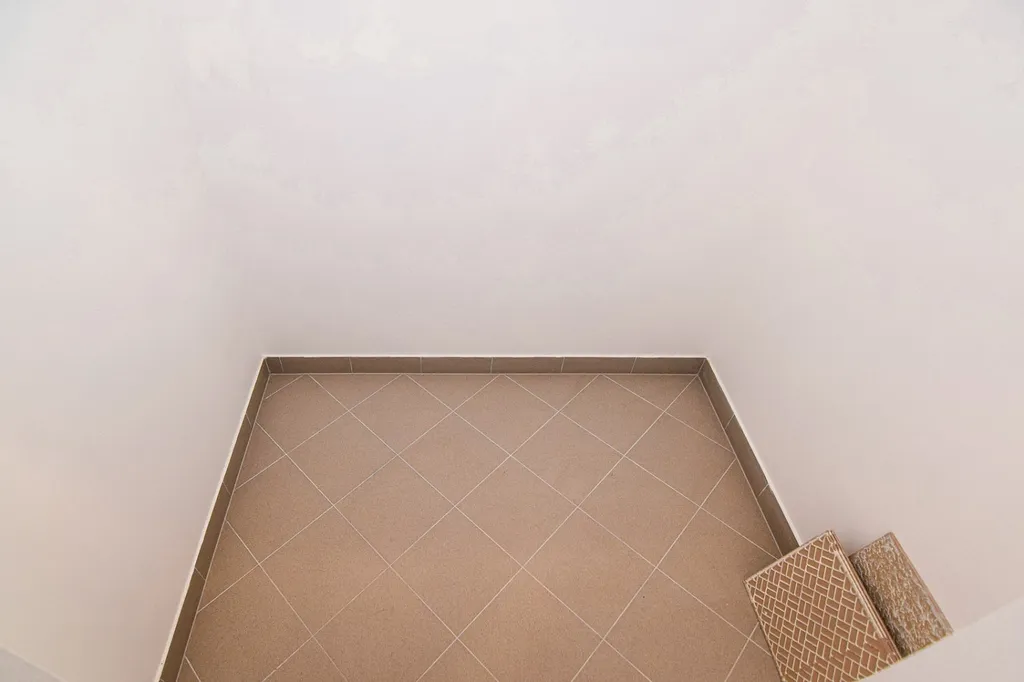 Na podlaze v chodbě a předsíni je položena dlažba. V obývacím prostoru je plovoucí podlaha v dekoru světlého dřeva. Okna mají vnitřní žaluzie.