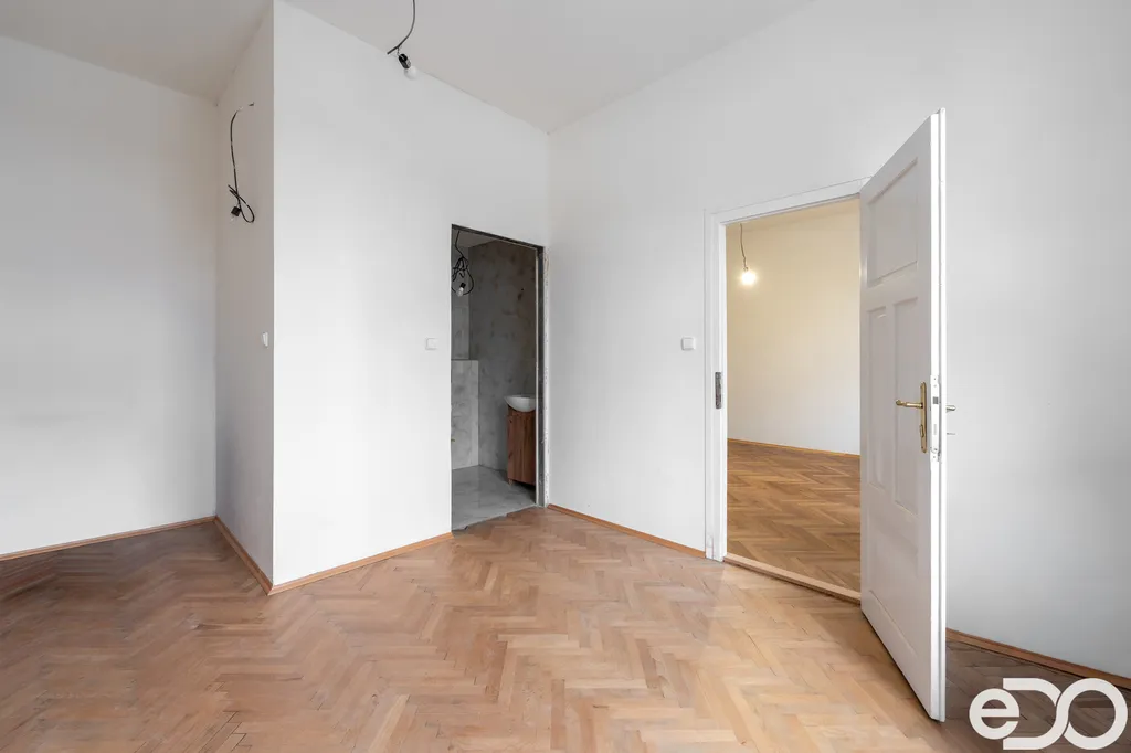 Byt prošel částečnou rekonstrukcí - rozvody včetně elektro. Interiér kombinuje zachované parkety s novějšími podlahami. Velká okna a vyšší stropy podtrhují charakter domu.