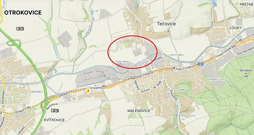 Nabízíme k prodeji komerční pozemek v Tečovicích u Zlína.